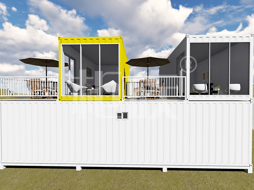The combination apartment adopts multiple containers superposition and staggered combination, and the courtyard balcony can be designed and constructed according to the wishes of the owner, showing its individuality. The internal practical space is sufficient and the supporting facilities are complete.