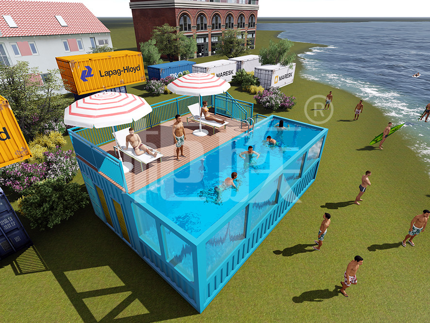 The container swimming pool produced by Guizu has the advantages of small floor area and low cost, which is suitable for courtyard, resort and playground.