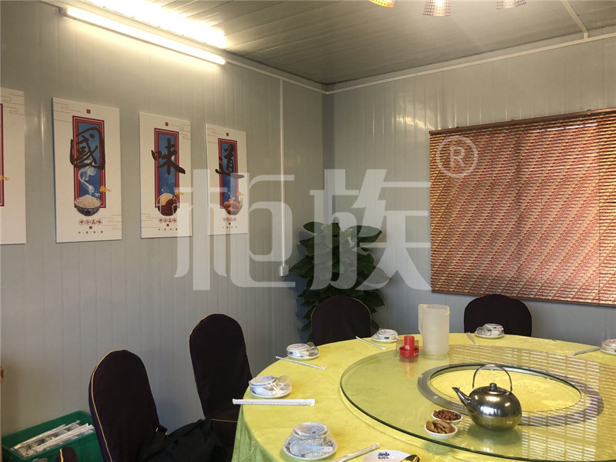 產(chǎn)品用材:鍍鋅方管框架、鋼化玻璃門窗、鋁花紋板走廊、生態(tài)木地板。