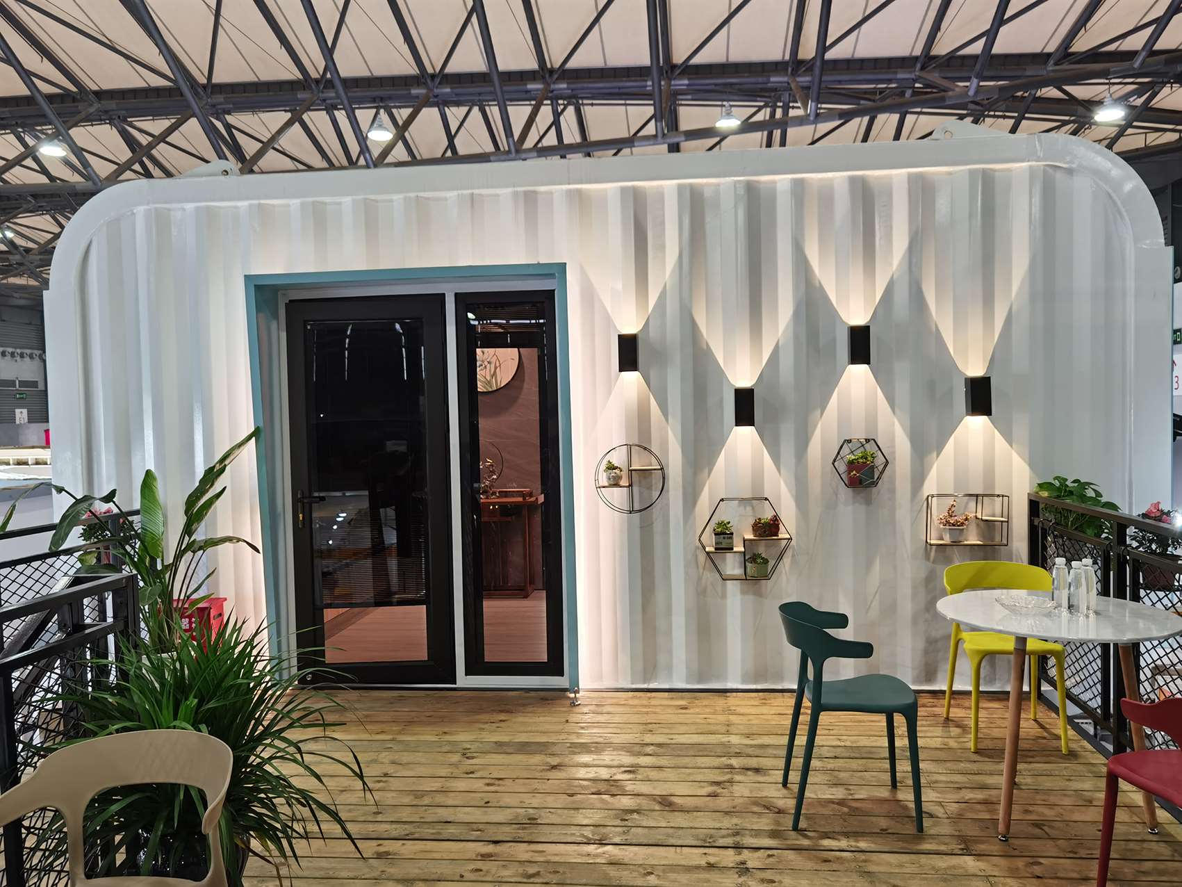 柜族本次參展的產(chǎn)品——逸海小筑位于E2裝配式建筑展區(qū)的2269展位,是一款以藍(lán)白為主色調(diào)、融入了水與波浪元素的海洋風(fēng)集裝箱別墅。該產(chǎn)品的設(shè)計理念為環(huán)保、舒適、旅居,以不破壞場地與自然環(huán)境為出發(fā)點,整個產(chǎn)品為工廠預(yù)制完成,地面抬高3個臺階,有效隔離了地面的潮氣。箱子著力點有圓柱支撐,底座圓盤加大了受力面積和整體平衡性。箱子整體分為一、二層兩個模塊,用吊機和平板車整體裝卸運輸,在選好的平整地面直接擺放就可以入住使用了。