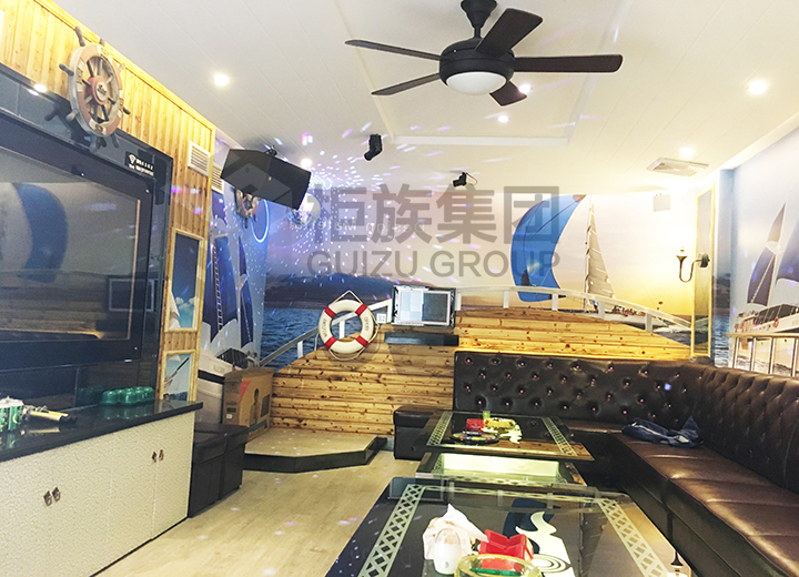 外觀弧形線條很好的搭配了音樂(lè)元素,凸顯集裝箱個(gè)性化設(shè)計(jì)特點(diǎn)。內(nèi)部唱歌、休閑設(shè)施齊全。